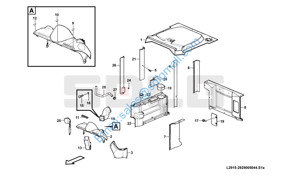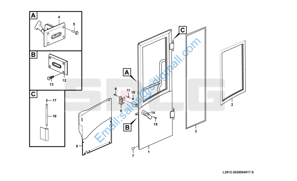 SDLG L958F 左门总成 D oor L2912-2929004517 Protecting cover L2911-2929002781 Trim panel L2915-2929005044 Platform L2920-2929004516