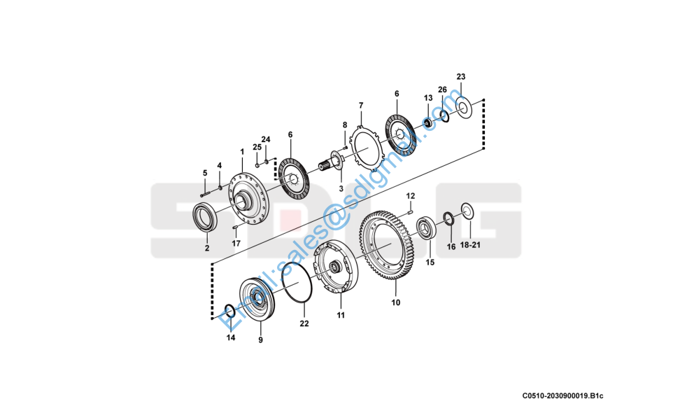 L936 四轴总成(2) Shaft and clutch assembly C0510-2030900019