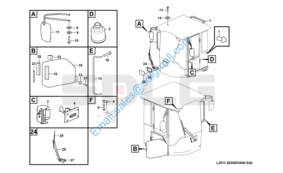 HomeL953-L0530W3114G29A0L953 驾驶室外部件 Cab assembly L2911-2929003840