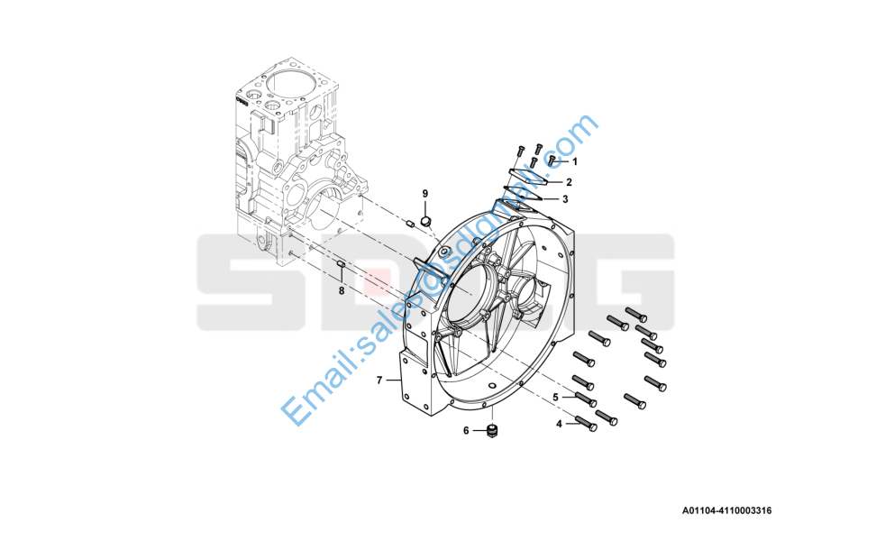HomeL956F-4110003316-发动机总成WD10G220E23(DHD10G0618)发动机总成WD10G220E23 Flywheel housing group A01104-4110003316