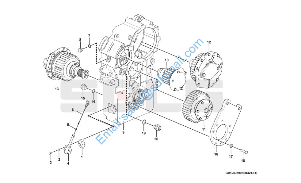 9 29050032341 分动箱壳体 Drop box housing Y 1