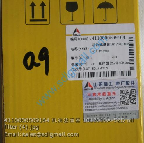 4110000509164 oil filter 1012010A-52D for SDLG spare parts